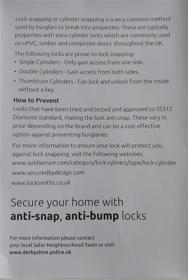 #LockSnapping #LockBumping #CrimePreventionAdvice #MakingDerbyshireSaferTogether