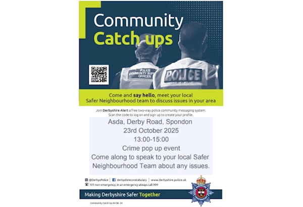 Come along and pick up advice on crime prevention and find out more information about keeping in touch with us through our free Derbyshire Alert messaging system.