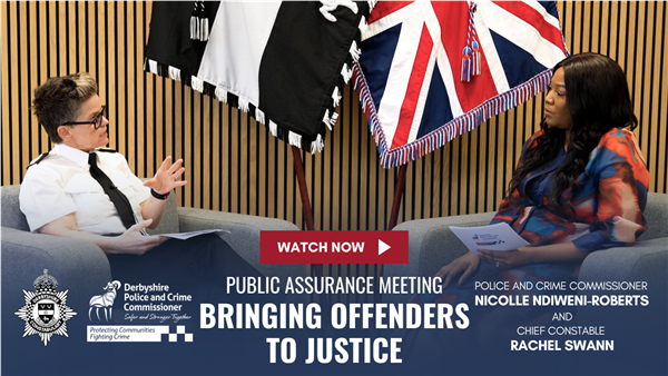 To watch the Chief Constable answering your questions, visit: Derbyshire PCC holds Chief Constable to account on Bringing Offenders to Justice