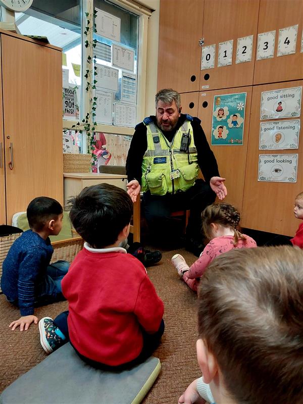 PCSO Buller attended Hadfield Nursery School, Queen St, Hadfield this morning, Friday 24th October afer being nvited to pop to and chat with their children (ages 2 - 5). Part 2