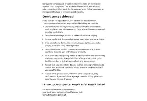 Please contact Police via 101 or online www.derbyshire.police.uk quoting 25000637957 should you find anything on your footage.