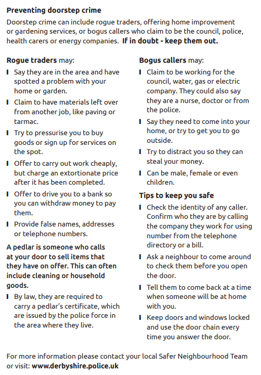 Please be aware of any callers you may have and always follow the tips below to help prevent dorstep crime.