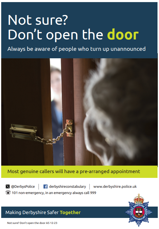We have been made aware from South Derbyshire District council (SDDC) that they have received a report of callers in the Midway area on Nov 10th claiming to be working for the council and attempting to gain entry inside the property. SDDC confirm that they had no council workers at the time in the area.