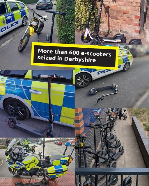 As we mark a year since our new ‘seize first’ approach with e-scooters, we’re urging you to think twice before buying an e-scooter, as they can only be used legally on private land. In the past 12 months, officers across Derbyshire have seized more than 600 e-scooters which have been ridden illegally on public paths or roads. These e-scooters have then been destroyed, with parts recycled where possible. We’ve also seen the number of incidents of injuries related to e-scooter collisions halve since the start of the new approach.