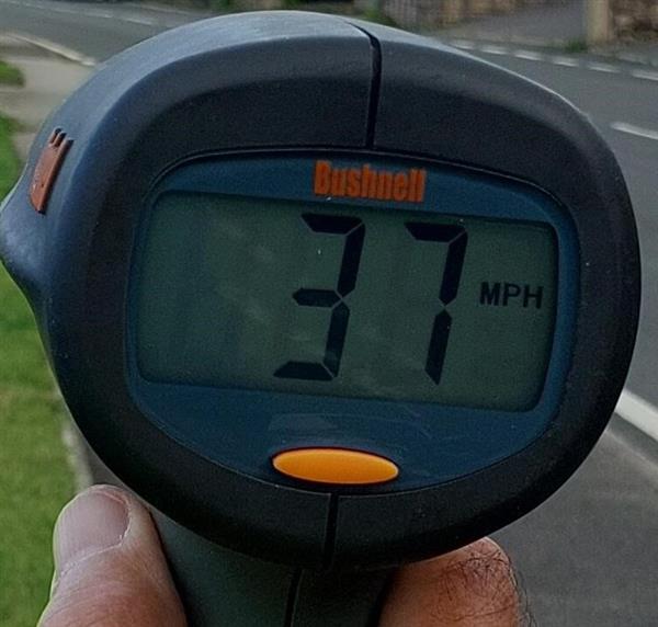 The speed limit on this road is 30 mph. During the event the today the number of vehicles who went by the team was 1058 of those 9 were recorded driving above 35 mph. with highest being 43 mph.