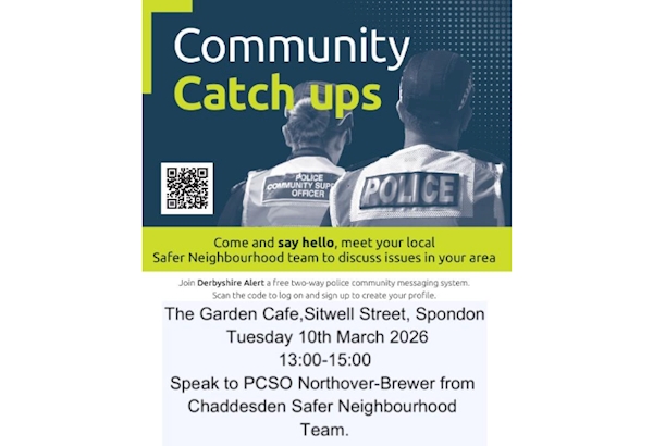 Your Safer Neighbourhood Team will be hosting a Community Catch Up event tomorrow in Spondon.