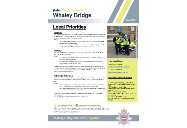 We are pleased to announce that the priorities for our community over the next three months have been established based on the input of local residents who participated in our Derbyshire Alert surveys, as well as insights from our local Safer Neighbourhood Team and crime statistics.