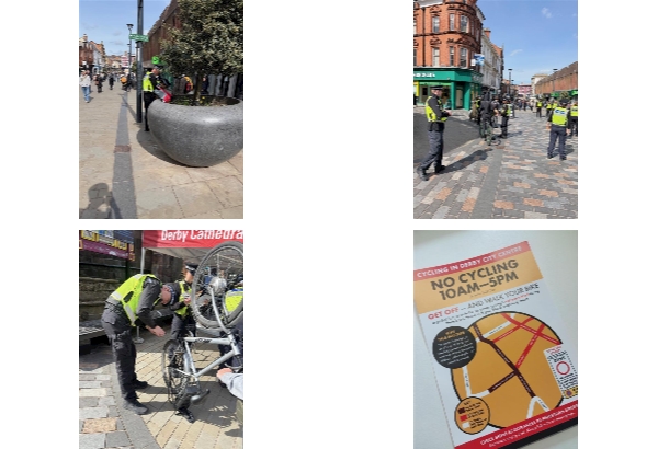 On Friday, the Safer Neighbourhood Team worked alongside the Council to host a bike engagement event within the local area. The focus of the day was to educate cyclists and pedestrians about the no-cycling zone's in place between 10am and 5pm, helping to keep everyone safe and informed.