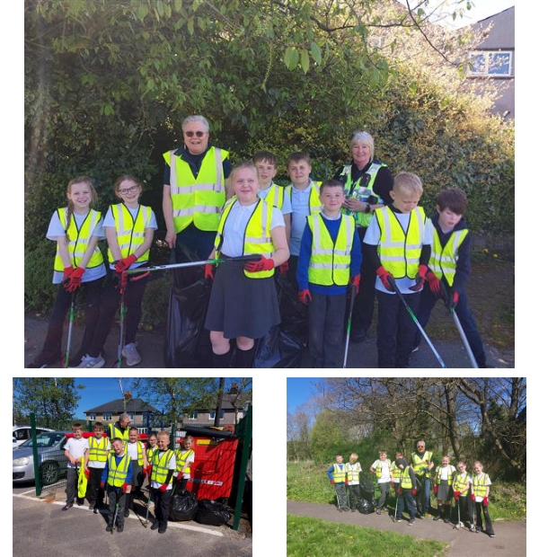 This afternoon, the Chapel Primary School Safer Mentors were out around Chapel‑en‑le‑Frith taking part in a community litter pick